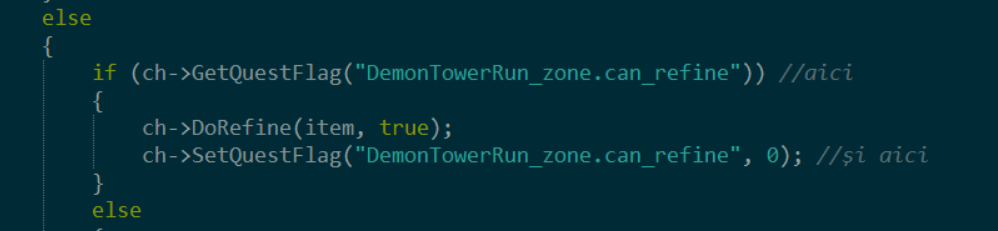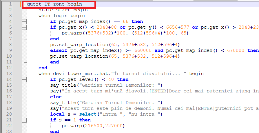 Atunci când ajungeaţi la etajul 6 din DT şi voiaţi să puneţi ceva pe fierar, apărea în chat ceva de genul: "Ai primit deja recompensa" ei bine, această problemă apare deoarece în sursă avem un state clasic cu care vine sursa şi anume "DemonTowerRun_zone.can_refine", voi dacă nu aveţi questul original şi aveţi alt state în quest nu o să puteţi să plusaţi itemele.