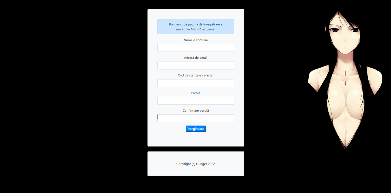 O pagina simpla de inregistrare prin care oamenii isi pot face cont pe server.