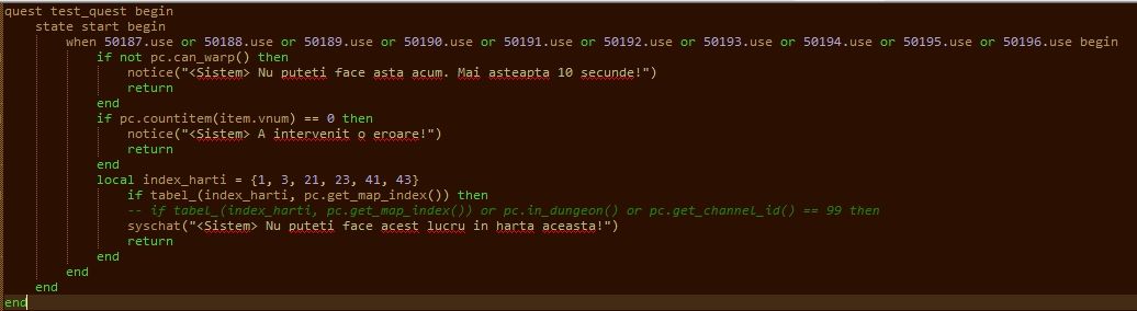 Dacă vreți să blocați quest-ul să ruleze direct în hărțile care sunt pe channel99 sau în timp ce rulezi un dungeon, modificați funcția: