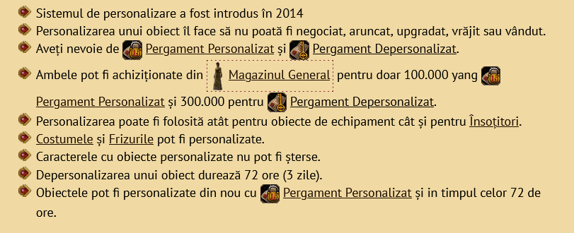 Daca vrei sa le depersonalizezi, trebuie sa folosesti itemul "Pergament Depersonalizat". Procesul dureaza 72 ore (3 zile)